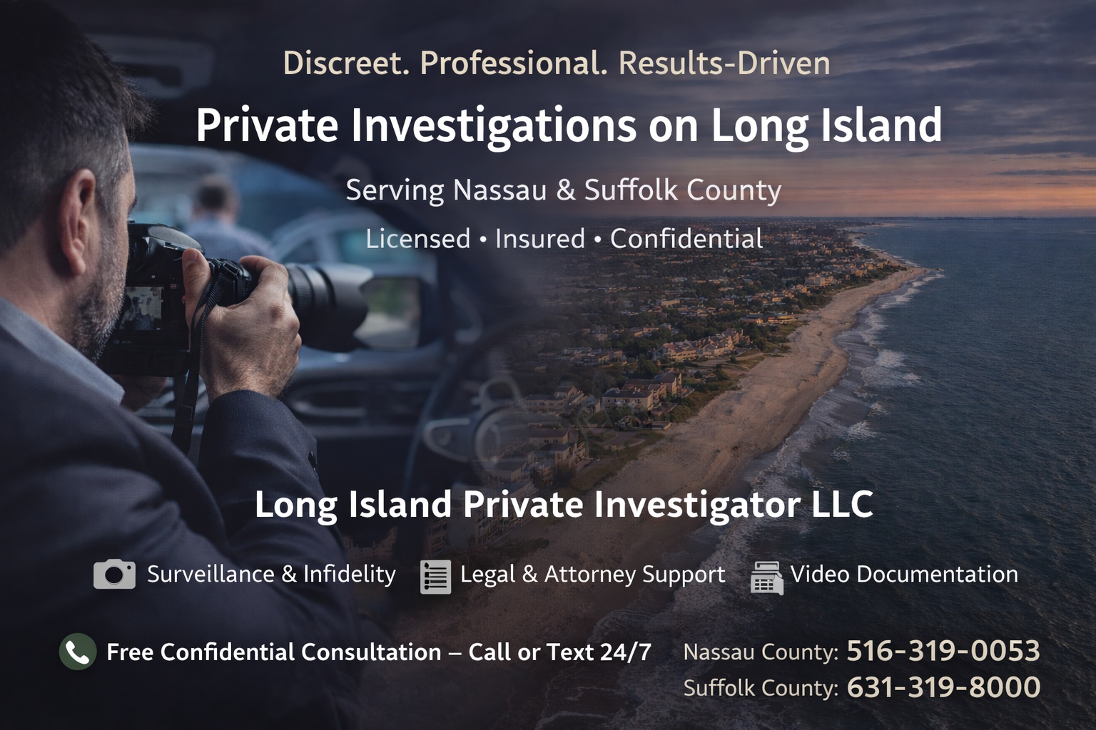 At Long Island Private Investigator LLC (LIPI), we proudly bring over 20 years of professional investigative experience to clients across Nassau, Suffolk, and the greater New York area. Our reputation is built on trust, discretion, and results. We understand that when you reach out to a private investigator, you are often facing sensitive, stressful, or high-stakes situations. That is why our mission is to provide clarity, peace of mind, and solutions through thorough, ethical, and reliable investigative services.